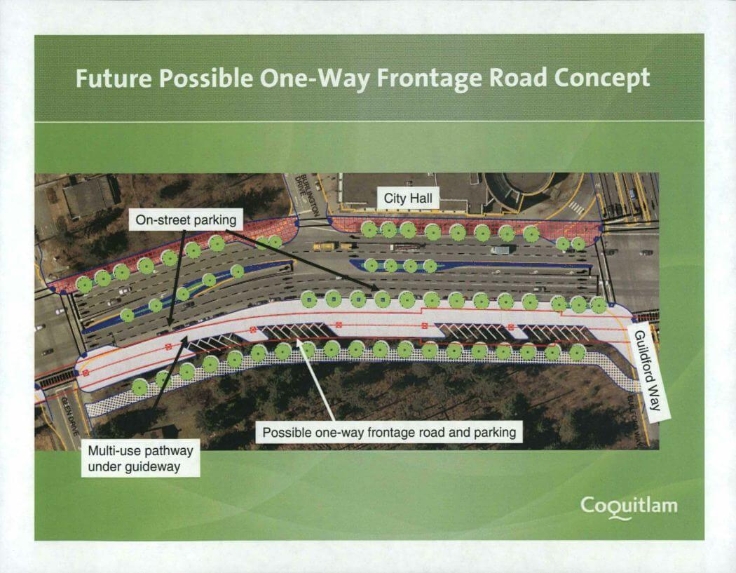 The City of Coquitlam has just released a concept for street enhancements that outlines the very high level of community integration that will accompany the Evergreen Line SkyTrain. The concepts are a critical element of the Coquitlam city-wide Official Community Plan (OCP) and detail the City’s opportunity to shape the functionality and livability of the three primary corridors impacted by the facility.
