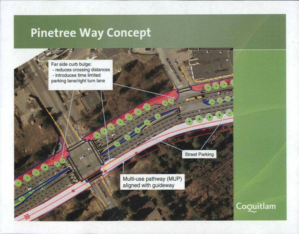 The street-scaping work will mean that pedestrian crossing distances are reduced, while at the same time traffic mobility is improved; ensure that space under the guideway and near stations is used effectively; and respond to the new levels of demand for multi-modal access to station areas and linkages along the corridor and into the community, which the Evergreen Line will create.