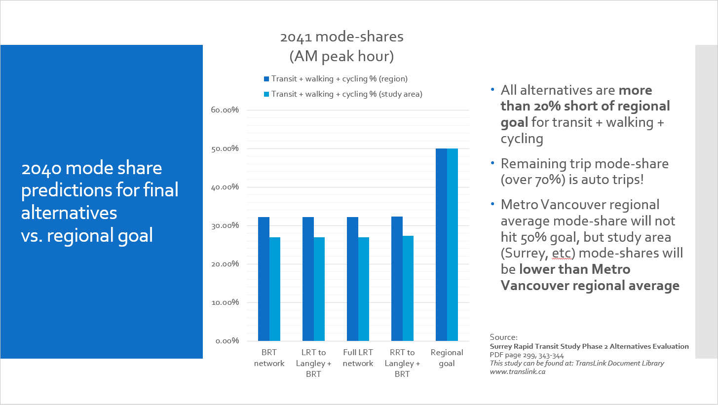 Attached to this press release and reality check are a collection of slides from the “Rapid Transit and Surrey’s Needs” report, which was prepared by Better Surrey Rapid Transit and recognized by the City of Surrey in a presentation this last April. (see below)