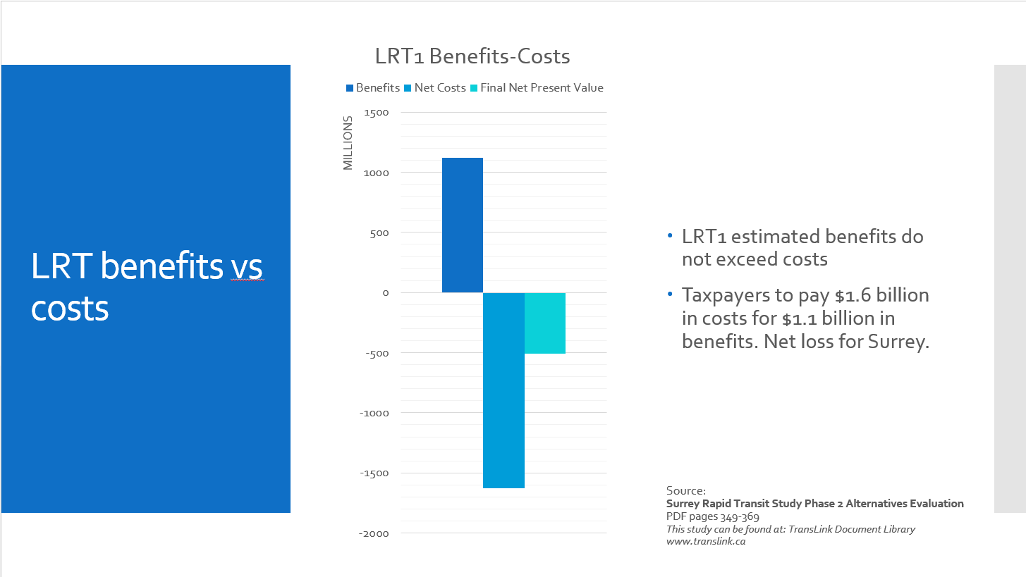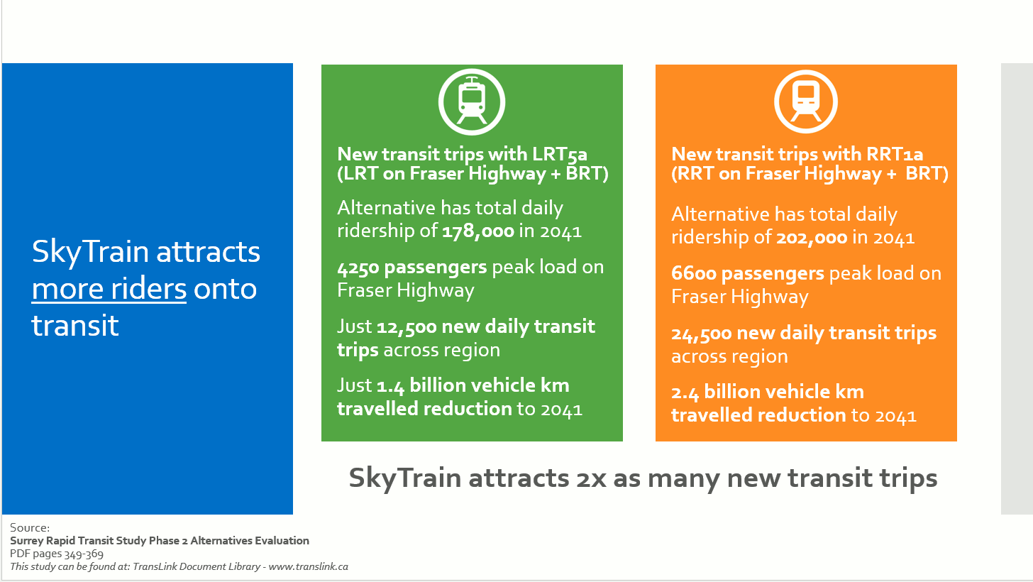 These discrepancies again expose the lack of research and weak case among Light Rail Links coalition backers. On the day of their launch, Better Surrey Rapid Transit (a citizens’ group that opposes Light Rail Links and advocates for SkyTrain for Surrey rather than LRT) launched a REALITY CHECK [CLICK HERE] that revealed that no new research was brought forward by the Light Rail Links advocacy, which rehashes vague reasons that have already been used by other advocates and unproductively adds nothing new to the discussion.