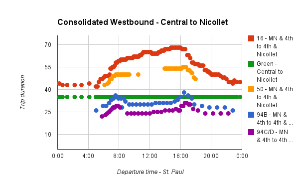 Note that times shown above, including the Green Line, reflected expected and not actual travel times on all charts (more clarification on this below)